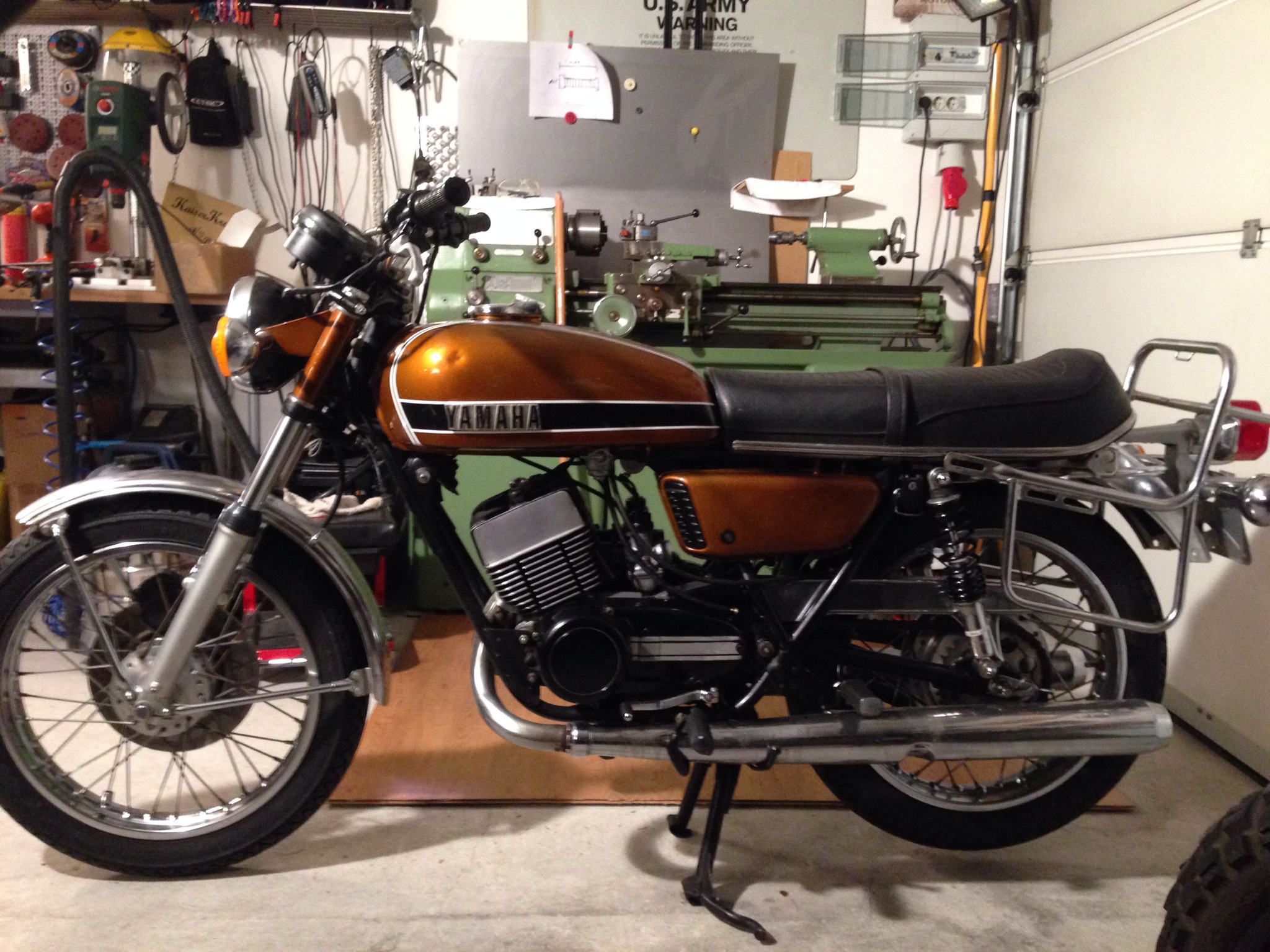 Nachdem einem das 101 geradezu mit Gewalt neue Ideen ins Gehirn presst, eine SR500 Probefahrt (Danke Alex) alte Pläne wieder aufleben lässt, und beim Spaziergang mit Pedro zur Pommesbude die Vorzüge von giftigen Zweitaktern für gut befunden wurden, hab ich heute spontan beschlossen den Hänger anzukuppeln und mir eine Yamaha RD250 zu holen. Als unfertiges Garagen Projekt ausgeschrieben, Baujahr ’75 und im unverbastelten Originalzustand. Eigentlich perfekt für einen Umbau, wir werden sehen 😉 Ein Tracker solls mal werden. Street, Dirt, Brat…. wer weiß, letztlich gibt der Umbau die Linien vor, wie immer eben.